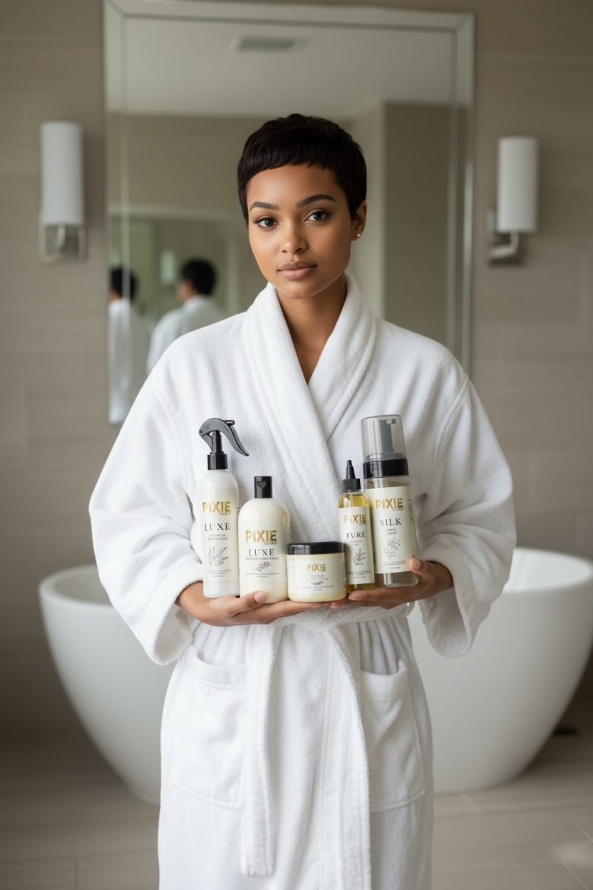 The Pixie La’Mode Elite Edition was created for the woman who dares to show up bold shorter hair, sharp mind, unstoppable energy. Every formula was intentionally crafted to nourish, protect, and define your pixie or cropped style so it stays sleek, soft, and unapologetically you.